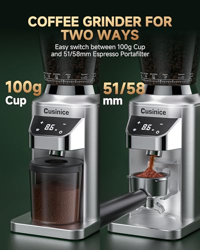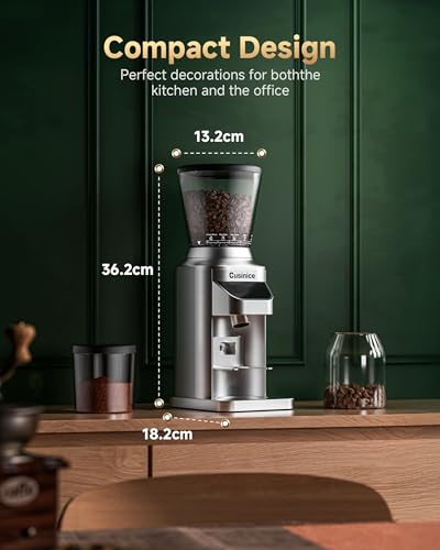 Cusinice Electric Conical Burr Coffee Grinder – Espresso Grinder with 34 Precise Settings – Anti-Static for Home Use, 11.3oz Hopper, Stainless Steel, Silver