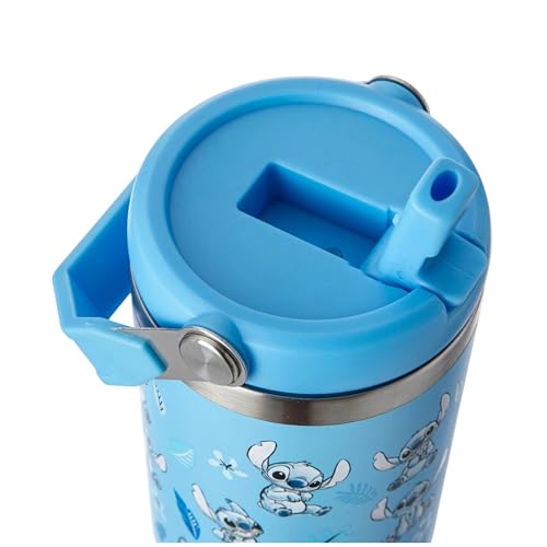 Disney Stitch 800ml Insulated Tumbler with Straw & Lid | Stainless Steel Water Tumbler with Carry Handle | Stitch Themed Double Wall Travel Mug, Leakproof Cup, Reusable Insulated Tumbler for Children