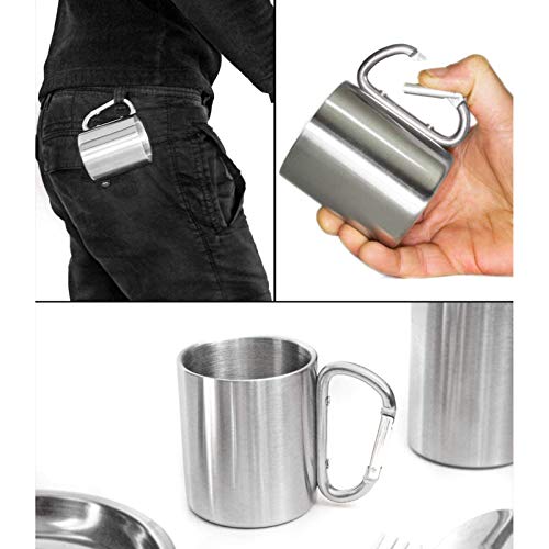 Double-Walled Carabiner Camping Mug 300ml Stainless Steel Outdoor Cup with Secured Carabiner Handle for Travel, Hiking, and Trekking (Silver)