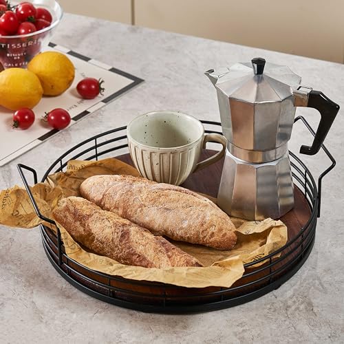 - 🏡 Ideal Home Decor & Serving Solution: Revamp your living area with this adaptable 34cm round metal serving tray featuring a chic wooden base – perfect for refined tea service, breakfast in bed, or as a remarkable coffee table centrepiece that harmonises beauty and functionality.