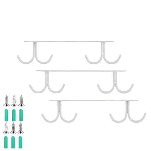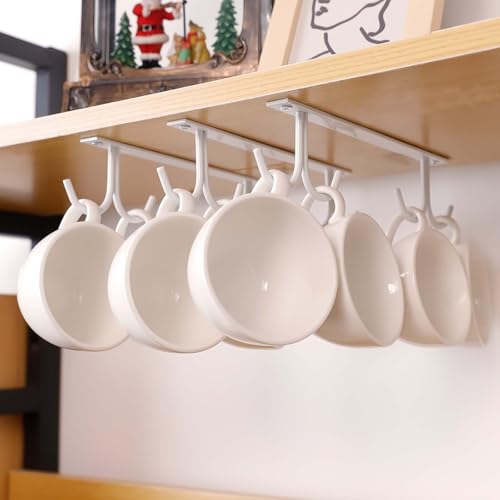 EigPluy Pack of 3 Cabinet Cup Holders, 12 Hooks, Hanging Coffee Cup/Mug Holder (White)
