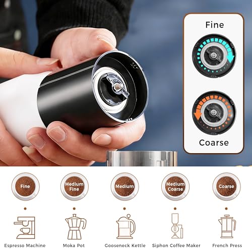 Electric Coffee Grinder with Customizable Grind – Fully Dismantlable & Washable (Motor Excluded), USB-C Charging, Compact for Home, Office, Travel, Camping & Students