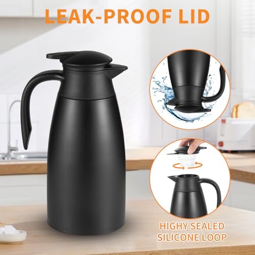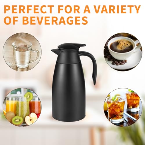 - Perfect Capacity 2L: The vacuum-insulated thermal coffee carafe boasts a capacity of about 68 oz, providing ample space to store enough coffee, tea, water, or any other beverage to keep your guests replenished. Ideal for use at home, the office, parks, and more.