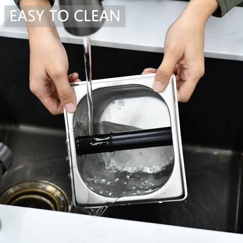 • Durable and Secure: Our Espresso Knock Box is crafted from premium thickened stainless steel, ensuring exceptional strength and durability. You can knock it confidently without fear of breakage. Additionally, it features silicone protection pads for enhanced safety.