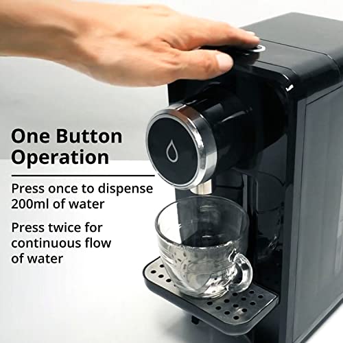 - SINGLE BUTTON CONTROL: The tabletop water dispenser features a simple one-button control for dispensing hot water effortlessly. Press once for a single cup (200ml) or press twice for continuous flow. Tap the button again to halt the water flow manually.