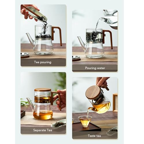 - [HEAT RESISTANT GLASS] Crafted from high borosilicate glass, our teapot is safe for both hot and cold beverages. Equipped with a safety handle for easy pouring.