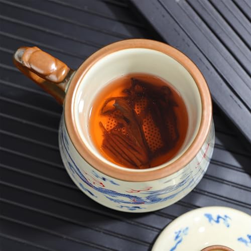 Fanquare Chinese Tea Cups with Infuser & Lid, Blue Loong Tea Mugs, Porcelain Large Tea Steeping Mug for Home Gifts 450ml