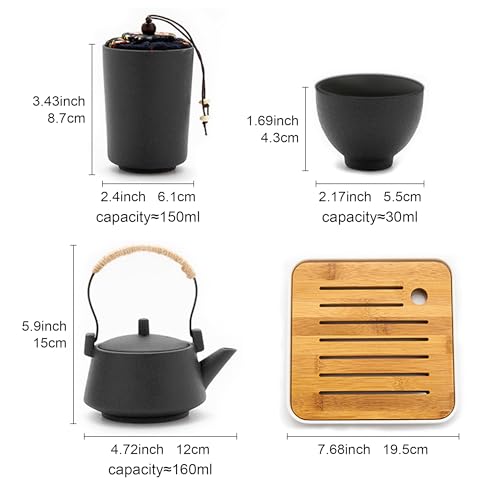 - **CAPACITY & SIZE**: Teapot capacity: 160 ml, dimensions: 12 x 15 cm; Cup capacity: 30 ml, dimensions: 5.5 x 4.3 cm; Tea canister: 150 ml, dimensions: 6.1 x 8.7 cm; Tea tray: 19.5 x 19.5 cm. Please verify the dimensions and volume before ordering.