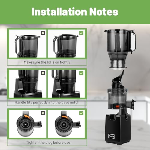 • Extra-Wide 135MM Chute & Large 1.8L Hopper – Eliminate chopping, the Fretta F6000’s extra-wide 135MM feed chute accommodates whole fruits, such as apples and carrots, saving you preparation time. The 1.8L large self-feeding hopper enables you to juice more in one go, making it perfect for families, healthy lifestyles, or entertaining—just load, press, and enjoy fresh juice faster!