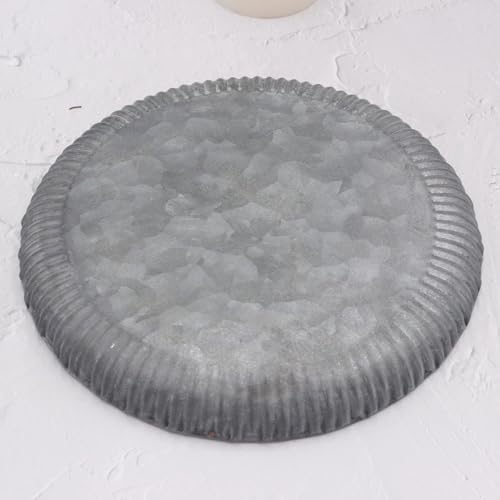 Funerom 25 cm Circular Galvanised Metal Tray Decorative Tray with Ribbed Edges