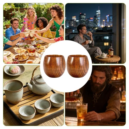 Generisch Set of 2 Wooden Coffee Mugs – Retro Wooden Cups for Household Use – Perfect for Kitchen, Cafe Counter, Espresso, Latte, and Parties
