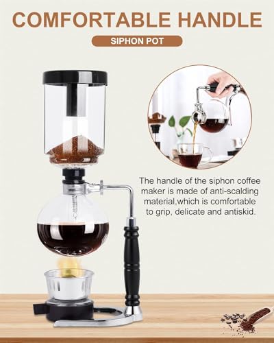 Tyenaza Glass Siphon Coffee Maker – Handcrafted Coffee Brewer with Stainless Steel Base, Vacuum Coffee Brewer for Home and Office Use