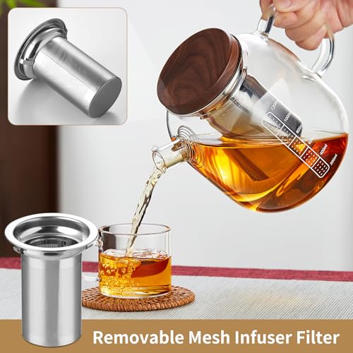 MESNEY 40oz Borosilicate Glass Teapot with Infuser & Lid – Stovetop & Microwave Safe with Stainless Steel Mesh for Loose Leaf & Blooming Tea