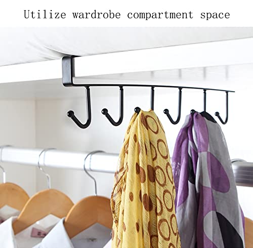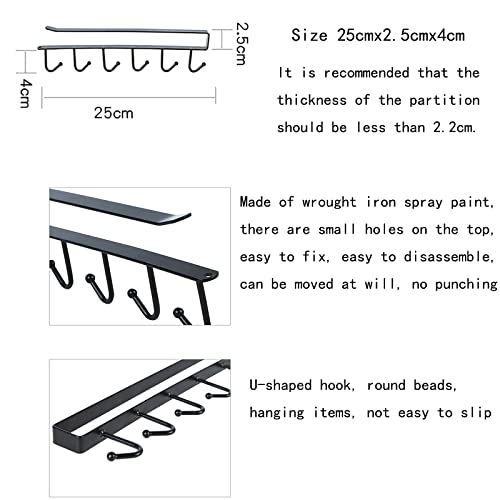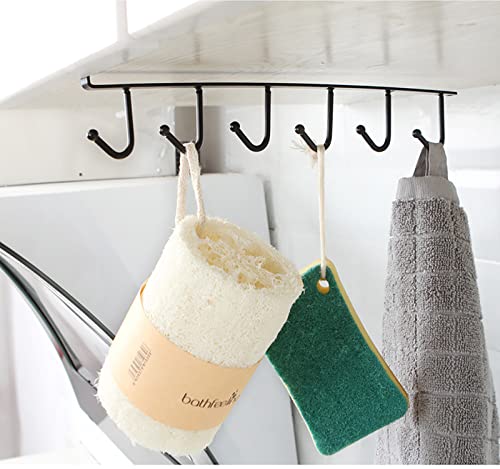 Gouccpu Under Cupboard Storage Hook, Mug Holders, Cabinet Hanging Cup Holder with 6 Hooks, Drilling-Free Kitchen Utensil Storage Organiser Hook Rack, Wardrobe Hooks, Black (1 Pack)