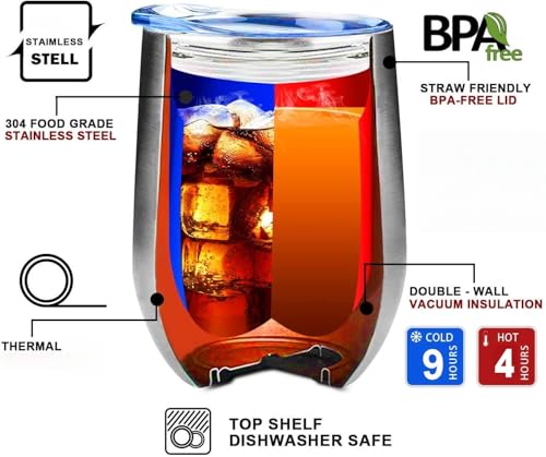 • Double-walled, vacuum-insulated excellence in a stemless wine glass crafted from durable stainless steel! Set off on your invigorating picnic, hiking, or camping trip with your water, wine, or cocktail icy cold for up to 9 hours or your coffee and tea hot for over 3 hours.
