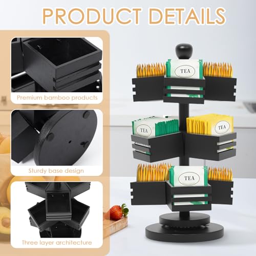 - Smooth 360° Rotating Access: Transform your morning routine with our ingeniously crafted tea bag organiser. Each tier rotates a complete 360 degrees seamlessly, enabling you to effortlessly browse and select your preferred flavours without rummaging through cluttered cabinets.