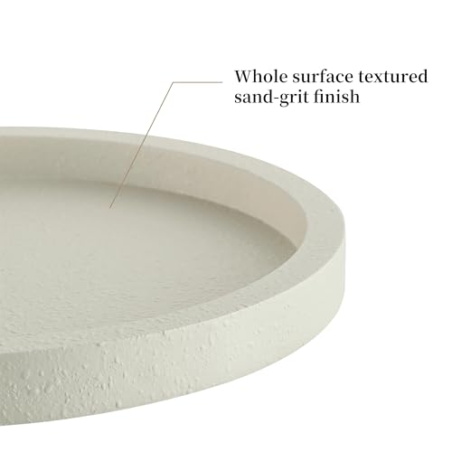 Hanobe Elegant Decorative Tray for Home Decor: 30cm Round Modern Coffee Table Tray for Living Room Minimalist Ivory White Non-Slip Wooden Centrepiece for Ottoman Topper