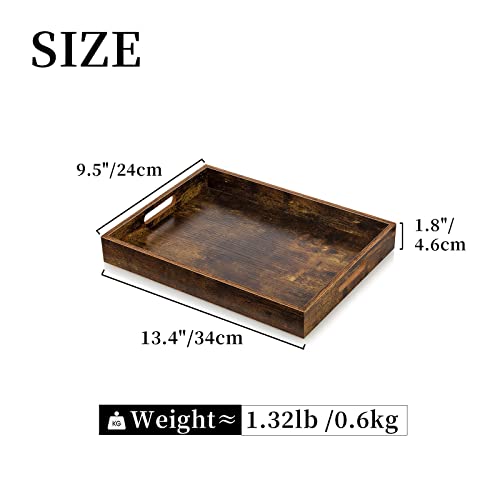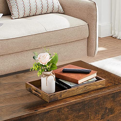 Hanobe Rustic Brown Rectangular Wooden Tray: Stylish Rectangle Decor with Cutout Handles for Living Room, Kitchen, and Ottoman