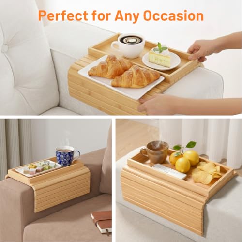 - VERSATILE DESIGN: This 2-in-1 couch arm tray table offers a handy surface for beverages, snacks, and small belongings whilst unwinding on your sofa.