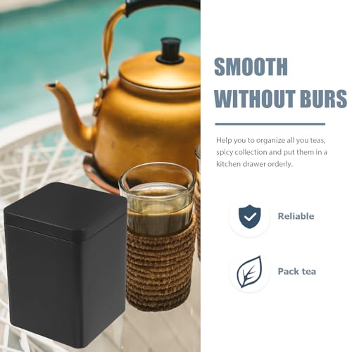 HEMOTON Square Metal Tea Canister with Airtight Lid 3.15 Inch Black Tea Storage Tin Box for Loose Leaf Coffee Sugar Container