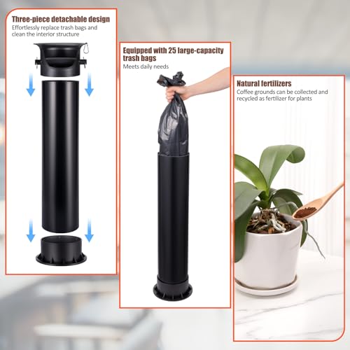 Extra-Large Capacity – This robust floor-standing coffee knock box measures 8 inches wide and 34 inches tall, boasting an 18L capacity. It includes 25 large garbage bags (35.5×13.6 inches) for efficient bulk collection of coffee grounds, making it perfect for bustling commercial environments like cafés and hotels, while also providing flexibility for home use.