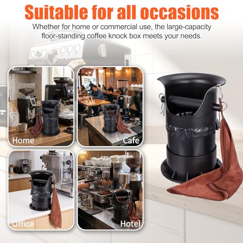 - Versatile Application: This floor-standing espresso coffee knock box eliminates the need for frequent emptying during brewing or practice sessions, significantly boosting efficiency. It also stores large quantities of coffee grounds for gardening as premium fertiliser. Suitable for cafés, Western restaurants, bars, or home kitchens, this high-capacity bin meets all your needs, whether residential or commercial.
