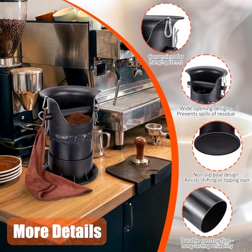 - Detachable Design: This vertical espresso knock box features a three-part disassembly (lid/body/base) for easy garbage bag replacement or cleaning. The included garbage bag, brush, and towel conveniently hang on both sides of the top, streamlining daily disassembly, bagging, and cleaning, making maintenance simple and efficient while reducing costs.