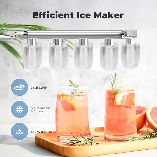 - Rapid and Energy Efficient: Create fresh ice within 6-8 minutes with two bullet sizes available. Generate 9 ice cubes at once and produce up to 12KG of ice daily.