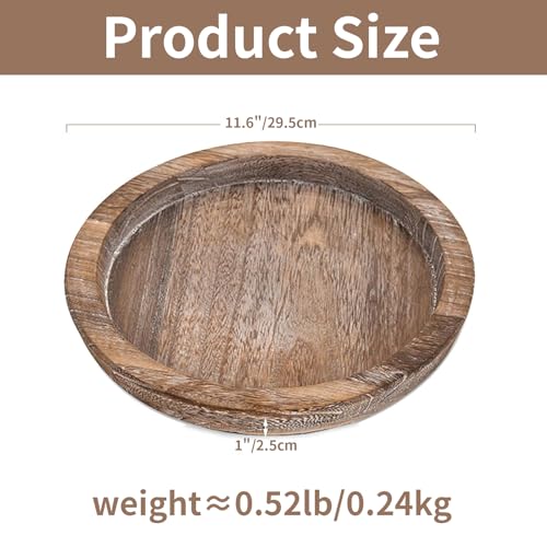- Premium Lightweight Wood: Crafted from robust, lightweight paulownia wood, this wooden tray is approximately 40% lighter than conventional wood, ensuring it is both sturdy and easy to manoeuvre. Its spacious 11" outer diameter (9" inner diameter) is perfect for showcasing multiple candles or small decorative pieces.