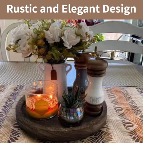 - Rustic and Elegant Design: This round wooden tray boasts a beautifully distressed finish, making it a charming table centrepiece. Its rustic style enhances any home decor, adding a distinctive touch to your living room, dining area, or kitchen.