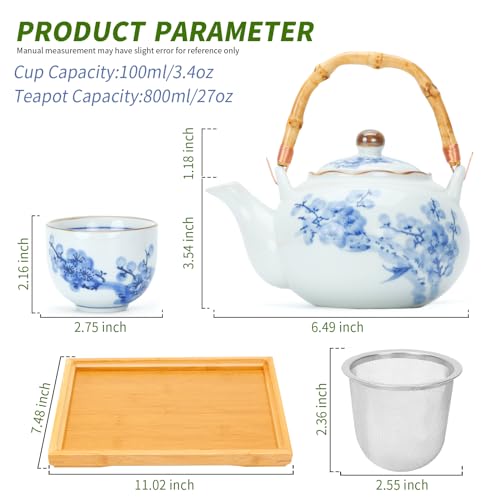 - Safe and Durable: Premium ceramic underglaze craftsmanship is employed by skilled artisans to create this charming teapot and tea cup set. The Japanese tea set is lead and cadmium-free, ensuring both safety and durability, promising you long-lasting enjoyment.