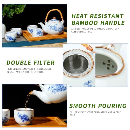 - Detail-Rich Ceramic Tea Set: The handle of the teapot is crafted from durable bamboo strips, natural and heat-resistant, providing a comfortable hold. High-density removable stainless steel infuser and built-in teapot filter holes effectively separate tea leaves from the brew, while ensuring a smooth pouring spout. An easy-to-clean bamboo serving tray is included for better presentation and storage.