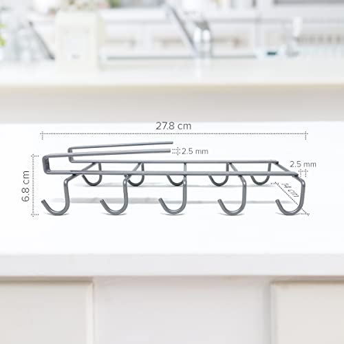 - SECURE CUP STORAGE: This mug hanger under the shelf can accommodate up to 10 items, thanks to cup hangers designed for shelves with a maximum thickness of 2.5 cm. The mug holder can be easily attached with the screws provided, keeping your tabletops and cupboards tidy, organised, and safe.