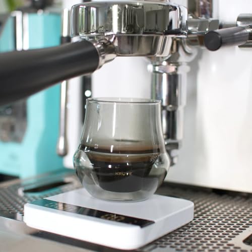 KRUVE Propel Espresso Cups, Handmade Double-Walled Glass Coffee Mugs, Smoke 2.5 oz, Scientific Design for Enhanced Coffee Taste (Set of Two) – Unique Glass Cups with Headspace & Internal Fins