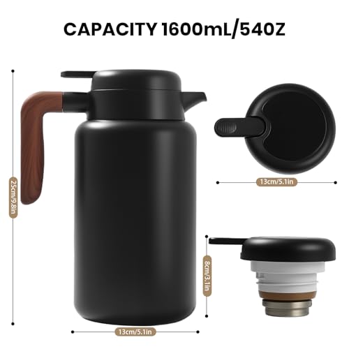 - LARGE CAPACITY: With a generous 1.6-litre capacity that serves approximately 7 cups, this insulated teapot effortlessly meets the drinking needs of multiple people without frequent refills. Whether serving morning coffee to your family or afternoon tea to guests, its excellent heat retention ensures every pour is at the ideal drinking temperature.