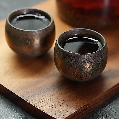 Kung Fu 6 Tea Cup Set 75ml | Traditional Coarse Japanese Pottery Style | Gold & Brown Ceramic for Tea Ceremonies