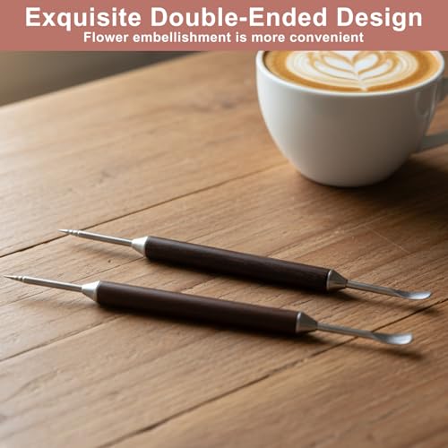 - 2-Pack Stainless Steel Latte Art Pens: This set features two refined latte art pen tools combining stainless steel tips with natural sandalwood handles, crafted for producing intricate designs in coffee foam with potential precision and control.
