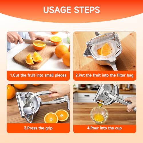 Manual Lemon Squeezer Juicer, Metal Citrus Press for Oranges, Limes, and Lemons, Safe and Efficient Heavy Duty Hand Juicer for Extracting Juices