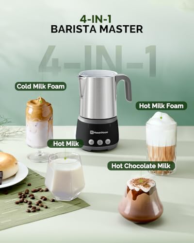 Maestri House Milk Frother, 4-in-1 Electric Milk Steamer and Whipper, 500mL 600W Smart Touch Control Hot and Cold Foam Maker, Memory Function for Latte, Cappuccinos, Warm Milk, BasicFro 500