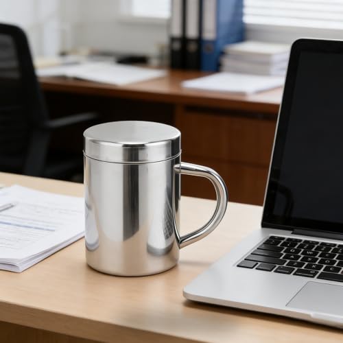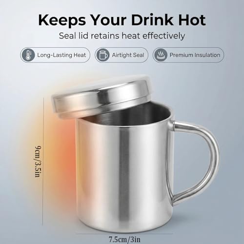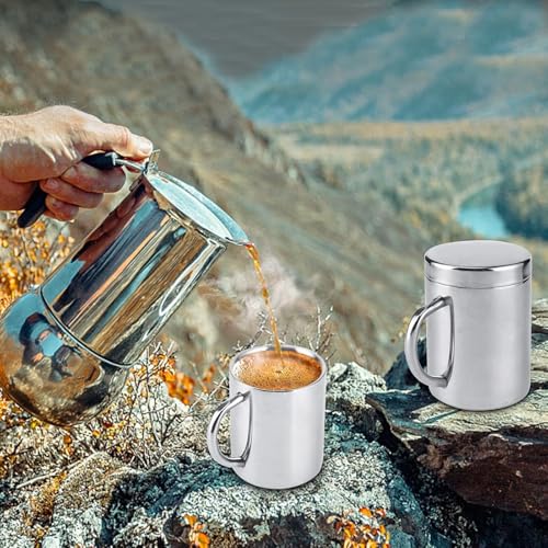 Majatou 304 Stainless Steel Camping Mug, Household Travel Cup with Lid and Handle, Easy to Carry (300ml)