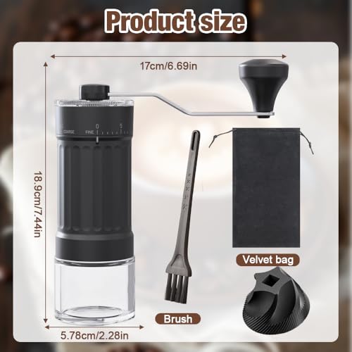 - 40-Level External Grind Size Adjustment: This manual coffee grinder provides 40 grind size settings to accommodate varying coffee taste preferences. Clear scale markings facilitate precise control of grind size. It efficiently grinds coffee for everything from fine espresso to coarse French press coffee.