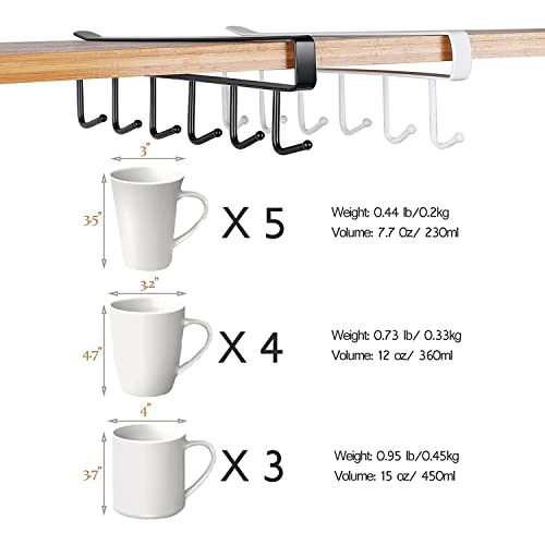 - ☕ SPACE SAVING: This set includes 2 metal coffee mug racks, each equipped with 6 hooks, providing a total of 12 mug hooks to help you effortlessly organise all your mugs. Designed for under-cabinet use, it can hold coffee cups, tea cups, or mugs beneath kitchen shelves.
