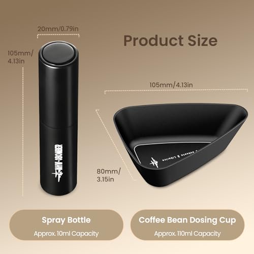 - 2-in-1 Coffee Dosing Cup & Spray Bottle Set: Includes a coffee bean dosing cup and a 10ml spray bottle. Tailored for baristas aiming to reduce static, making it ideal for both coffee bar accessories and espresso preparation.