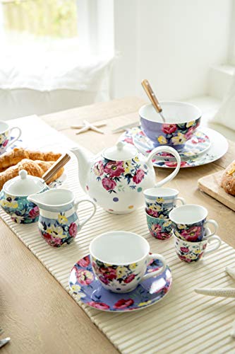 Mikasa Clovelly White Teapot with Colourful Polka Dots and Floral Motif, Porcelain, White, 1 Litre
