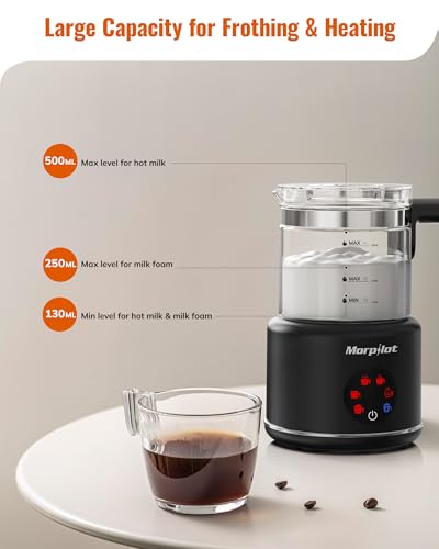 Morpilot 500ml Electric Milk Frother 6-in-1 Large Capacity Milk Steamer Visual Glass Hot Chocolate Maker