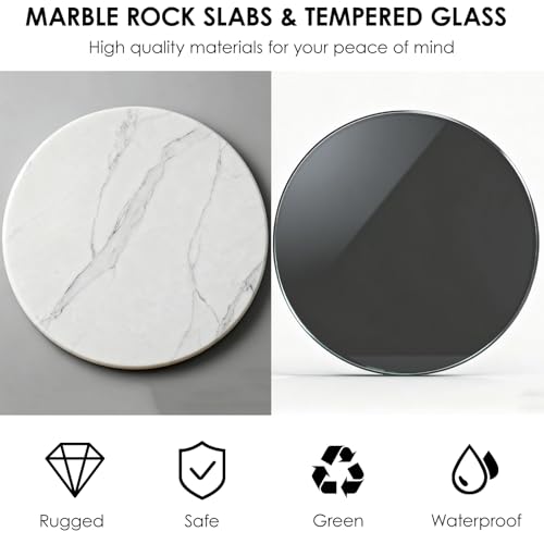 - [High Quality Material]: The Stacking End Side Table top is crafted from tempered glass and marble respectively, both wear-resistant and heat-resistant and easy to clean, while the hollowed-out metal frame prevents dust accumulation.