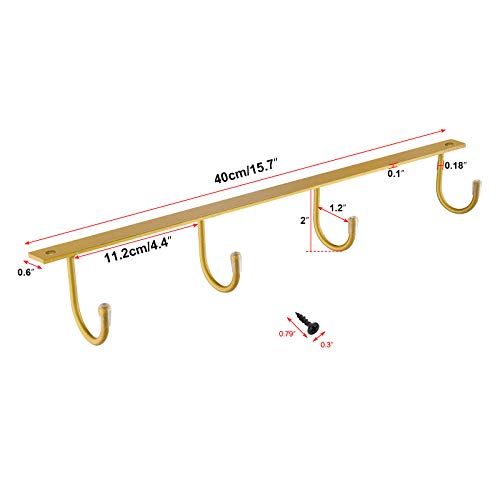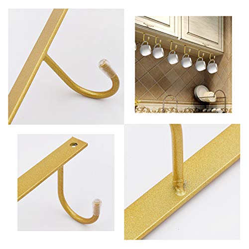 MOCOUM Coffee Mug Holder Under Cabinet, Metal Mug Cup Hook Iron Hanging Mug Rack Under Shelf Coffee Cup Holders for Counters (Gold, 3)