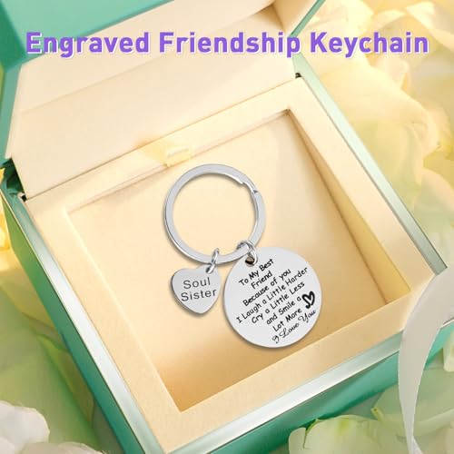 - Practical Sweet Keychain: Our stylish 3CM wide stainless steel keychain features a single-sided engraving design, ensuring durability and resistance to rust or fading. This unique keepsake will remind you of the special friendship at all times.