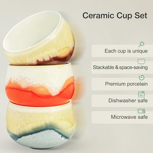 - Distinctive Craftsmanship: Natural details and a timeless aesthetic provide these cups with a sleek, modern appearance. Thanks to the Kiln-Glaze technique and meticulous handcrafting, each cup showcases organic, unique colour gradients and patterns—every piece is genuinely distinctive.