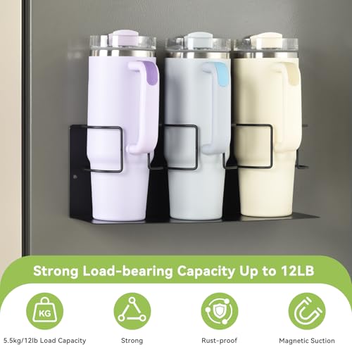 • Robust Magnetic Cup Holder: The OTraki water bottle organizer for Stanley is equipped with strong and heavy-duty magnet panels that securely adhere to refrigerator or metal surfaces. Each holder supports up to 5.5kg/12lb, securely holding large 40oz cups without sliding. The movable magnetic design allows you to reorganize your space anytime, creating a unique kitchen layout.